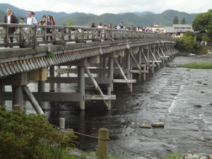 2013年の台風18号で桂川の氾濫にも耐えた嵐山の渡月橋。